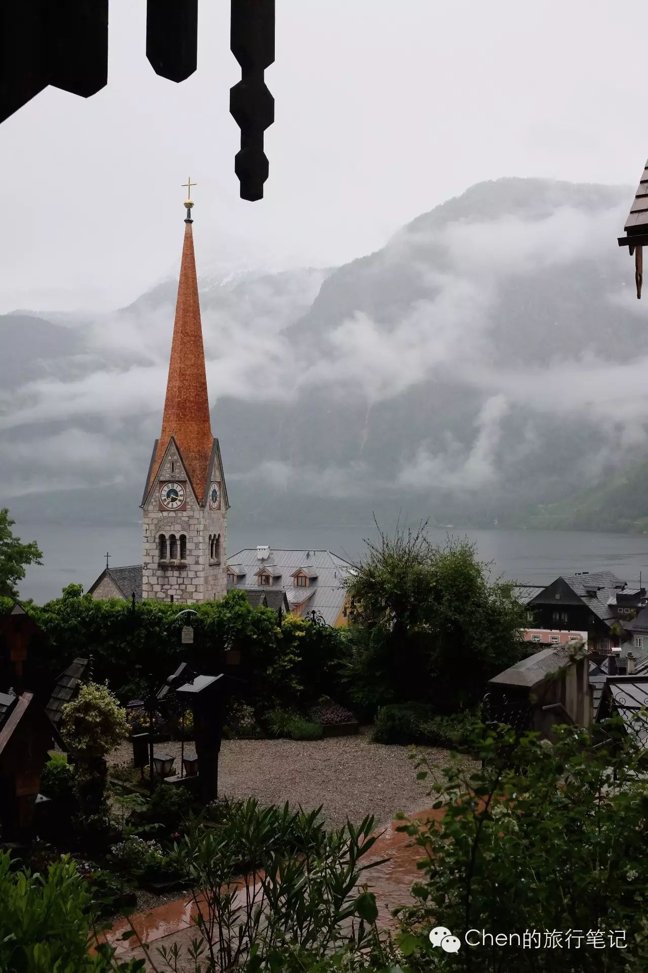 我们运气不错,碰上了Hallstatt Herriage宾馆湖景房的周末折扣。房间带有精致的木阳台和一个正对湖景的写字桌,雨大的时候就在屋里静静地看风景,也十分美妙。