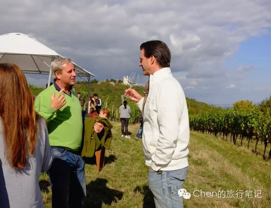 越往山上走,风景越好,驻足品酒的人也越多。在山顶,除了连绵的葡萄庄园,还能看见远处的维也纳市区,对面山上的教堂和山脚下的多瑙河。秋高气爽,品酒赏景,和朋友聊聊对各家酒品的喜好,不亦乐乎。