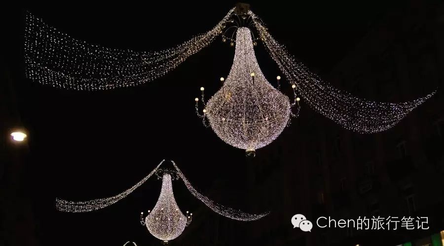 节日氛围法宝之二则是不同街道上挂着的风格各异灯饰:老城区中心主干道上的灯饰大多华丽绚烂,而稍微偏僻些的次干道上灯饰的风格则简洁明快而依然赏心悦目。
