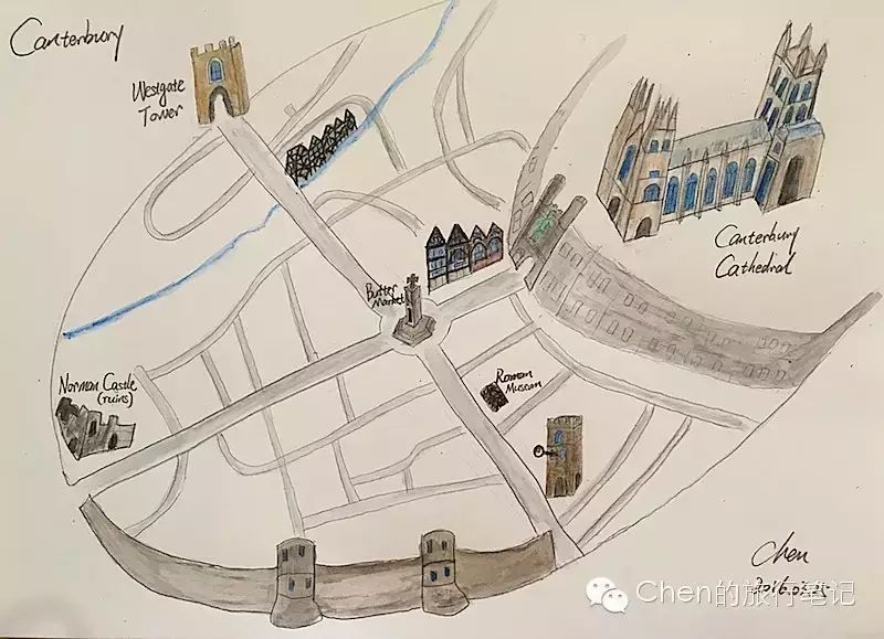 Canterbury古城本身也是一个历史瑰宝。残留的古城墙,城门,城堡,以及两条交叉的主干道上数不甚数的历史遗迹。Canterbury可以看的东西太多。